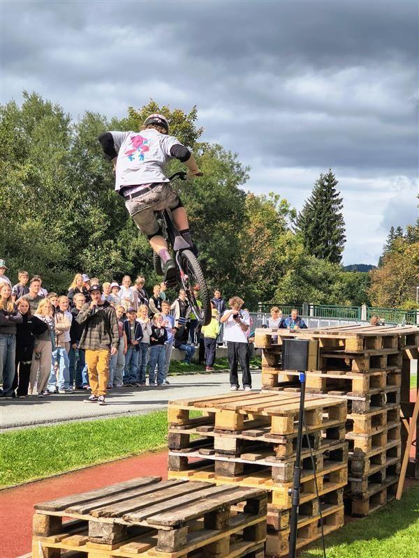 Als weiteres Highlight zeigte zum Abschluss der Lehrlingsmesse Fabian Dankl, ein professioneller Trial Biker, sein Können!