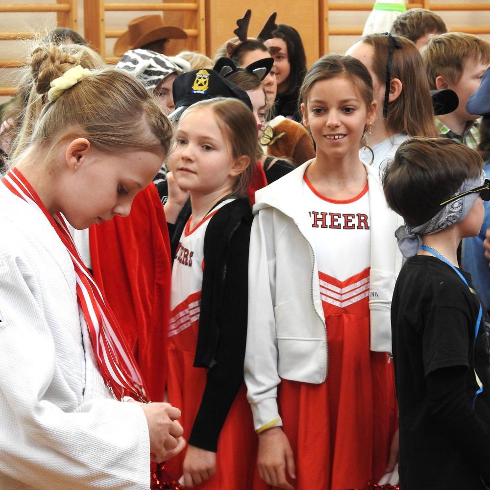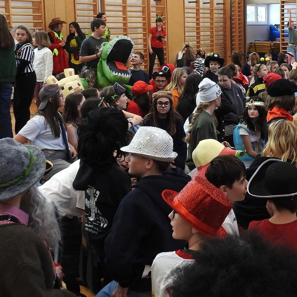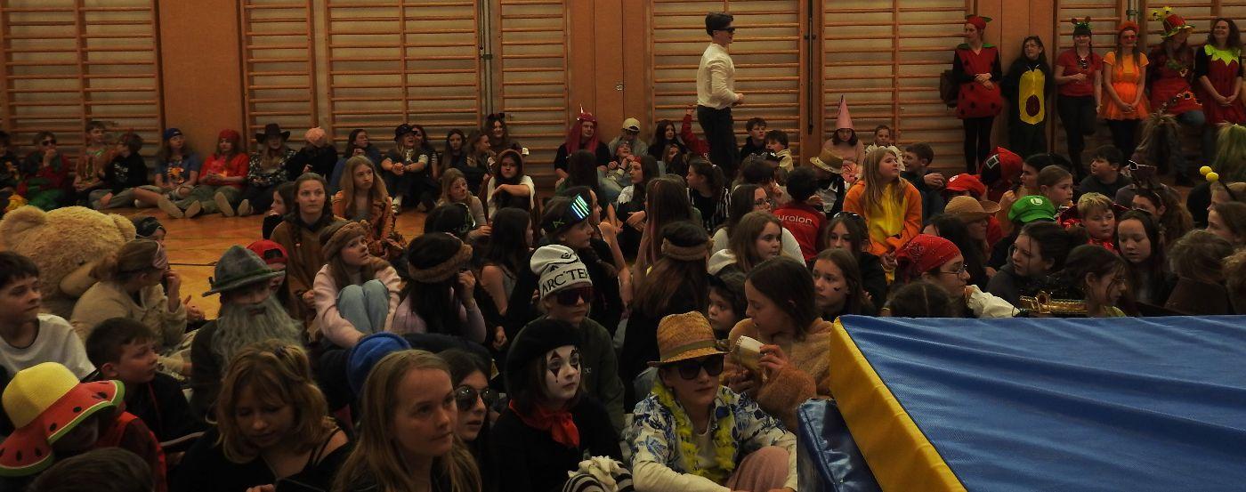 Nach einer Polonaise durchs Schulhaus wurde in der Turnhalle getanzt, gesungen und sehr viel gelacht. Ein Wettbewerb, in dem der beste Witz gesucht wurde, sorgte für Stimmung und natürlich wurden auch die schönsten und originellsten Kostüme gewählt.