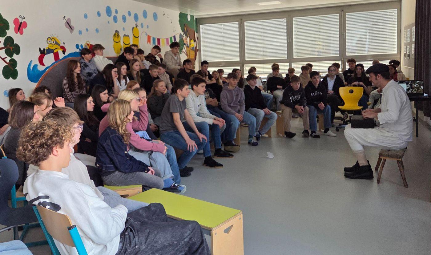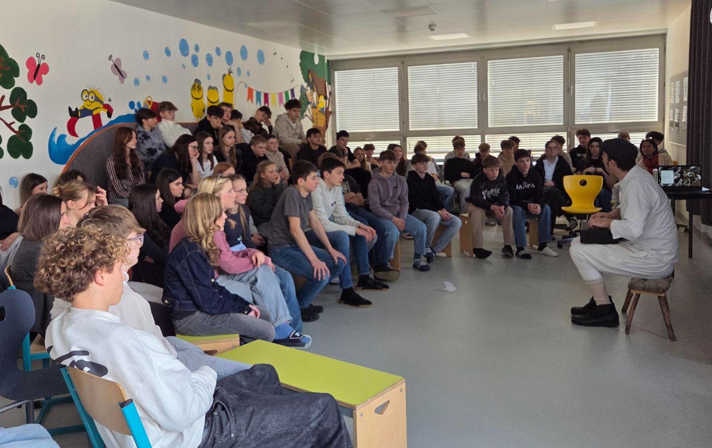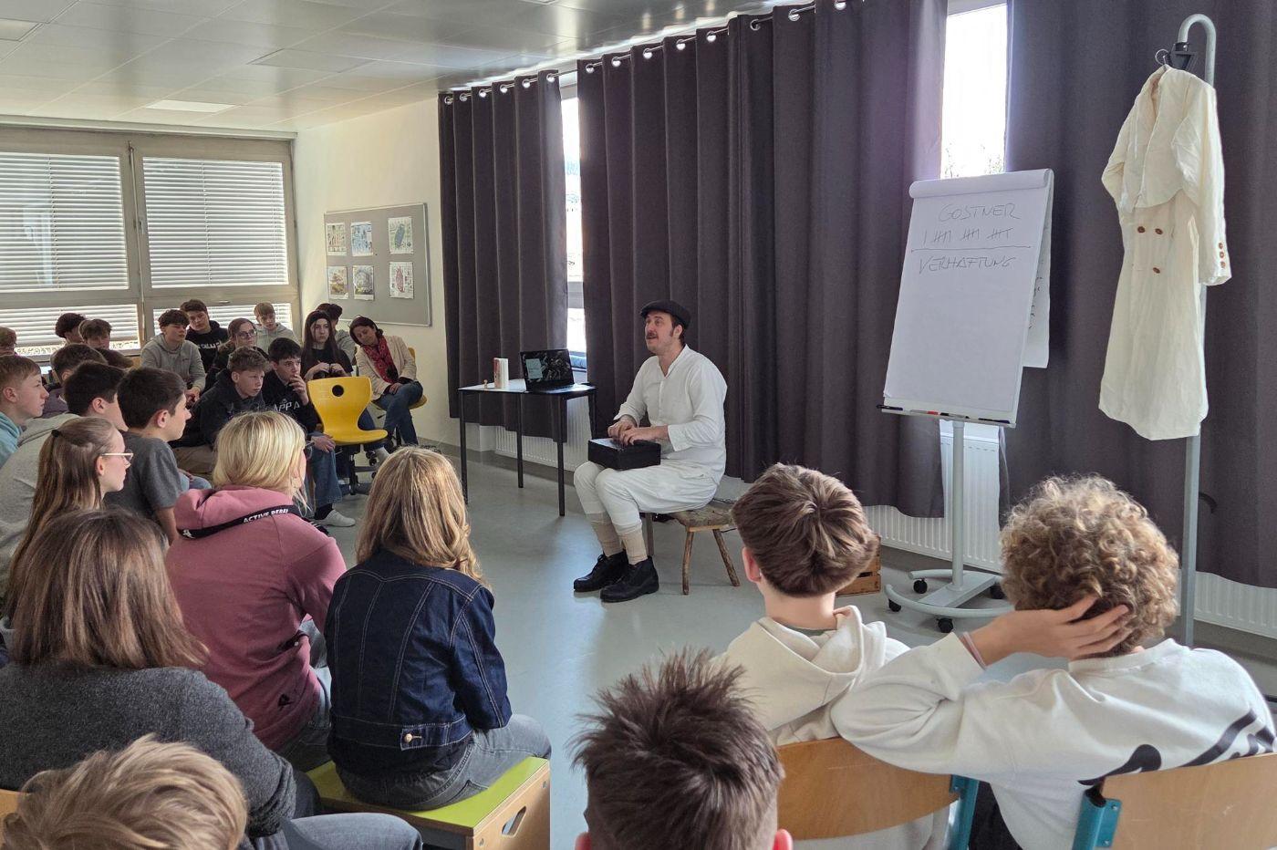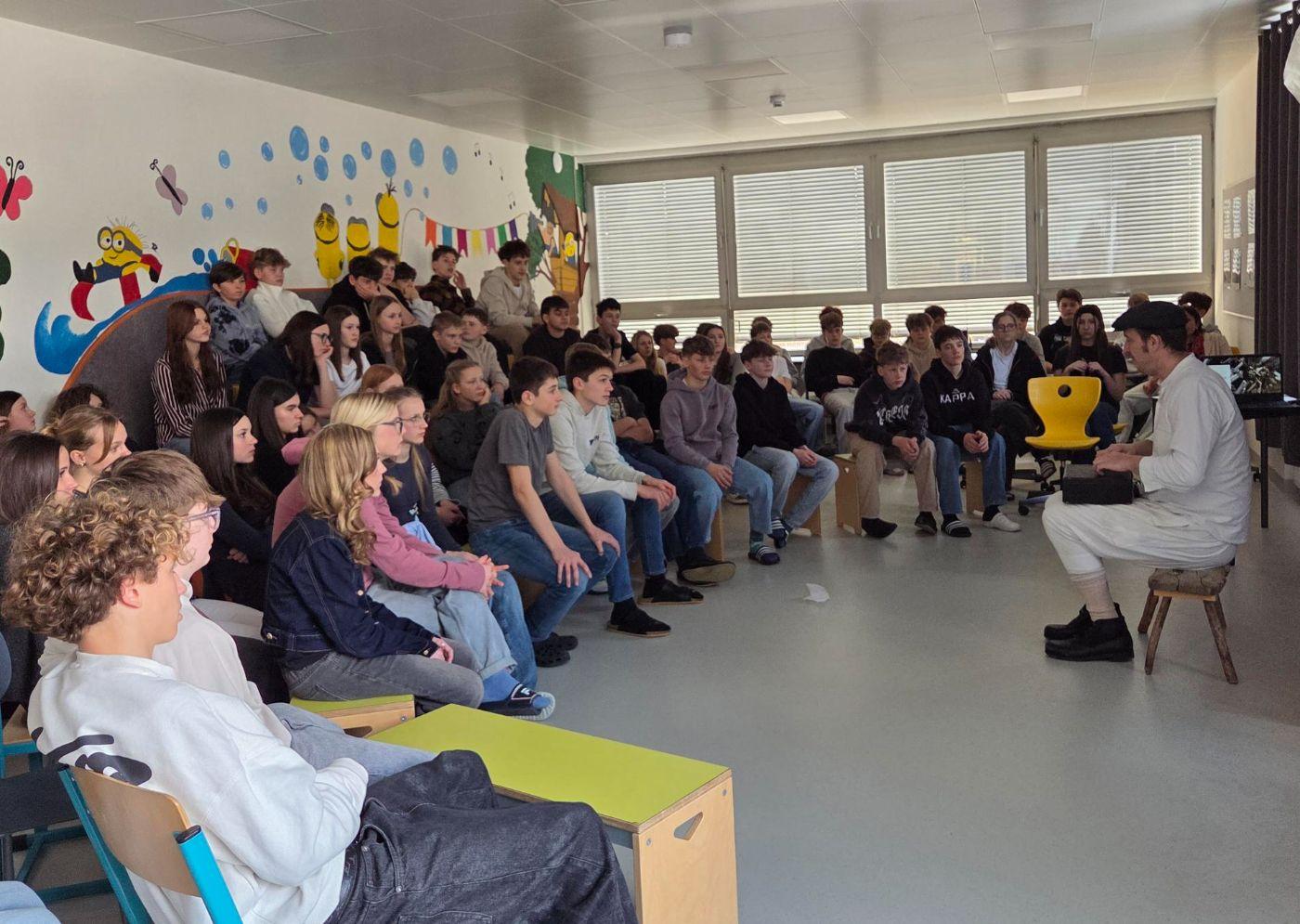 Mit viel Ausdruckskraft und Einfühlungsvermögen vermittelte er Inhalte aus dem bewegenden Werk „1000 Tage im KZ“. Die Schülerinnen und Schüler wurden dabei nicht nur Zuhörer, sondern emotional in die Geschichte hineingezogen und zum Nachdenken angeregt.