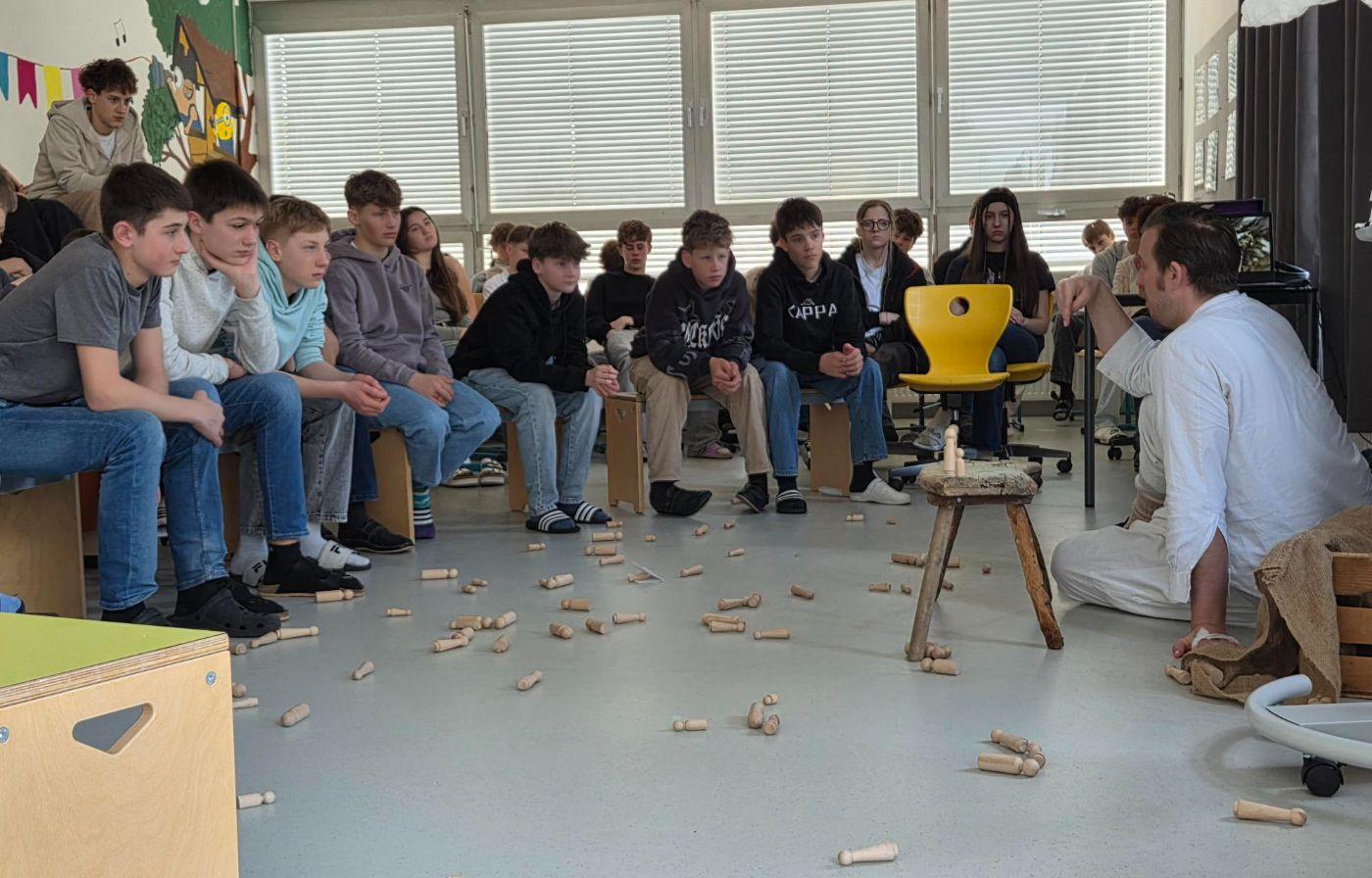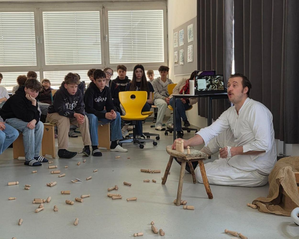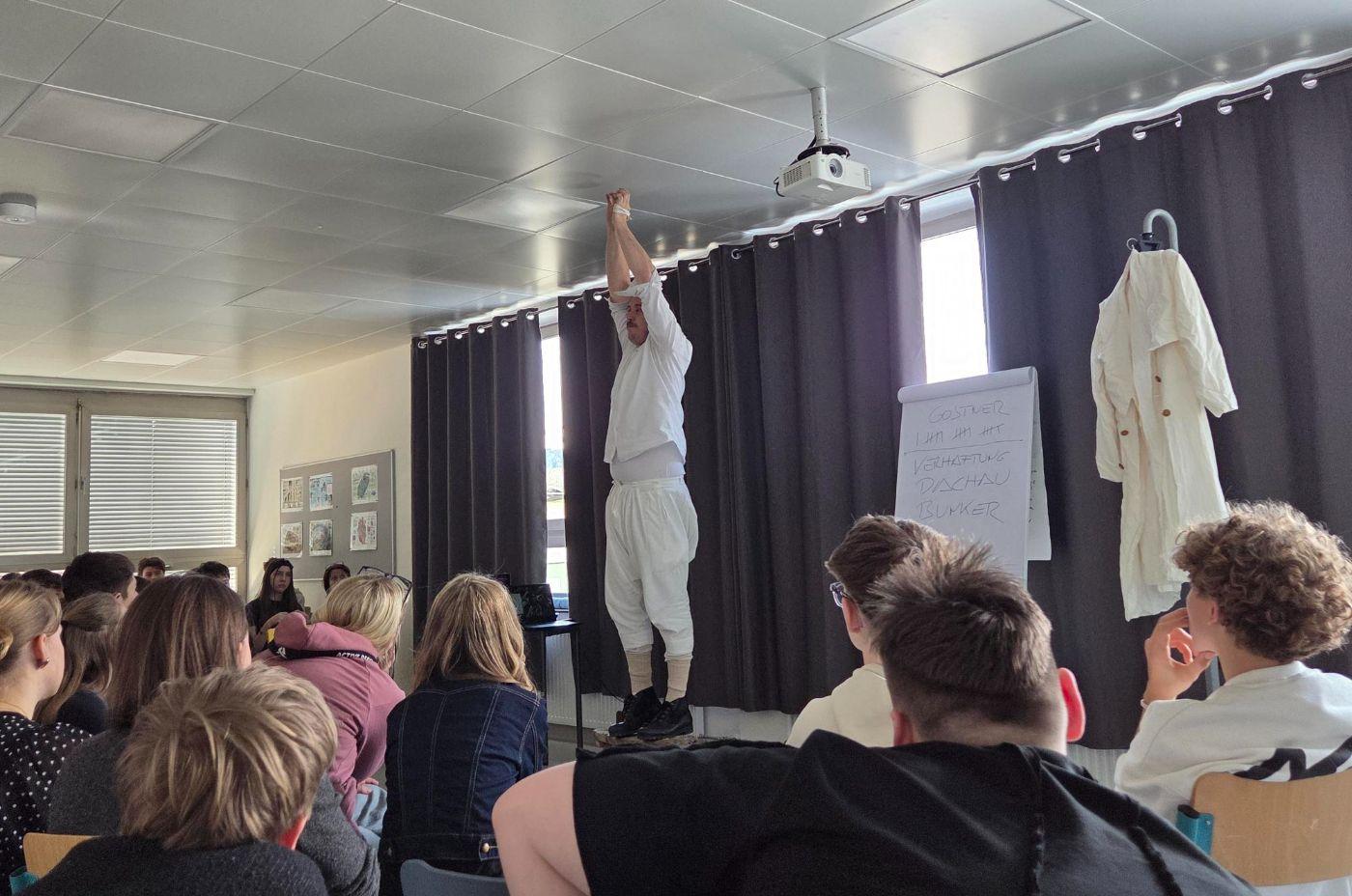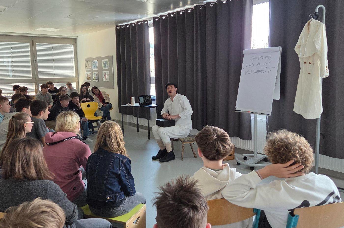 Mit viel Ausdruckskraft und Einfühlungsvermögen vermittelte er Inhalte aus dem bewegenden Werk „1000 Tage im KZ“. Die Schülerinnen und Schüler wurden dabei nicht nur Zuhörer, sondern emotional in die Geschichte hineingezogen und zum Nachdenken angeregt.