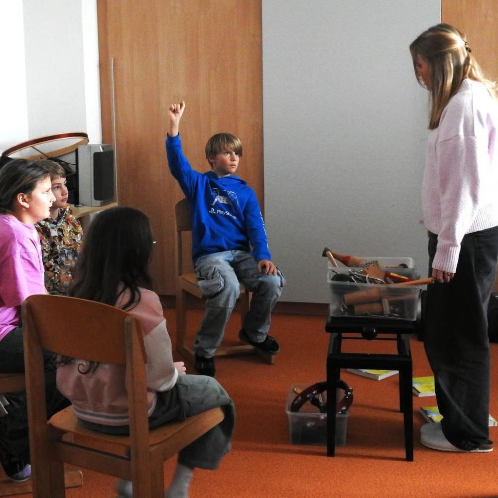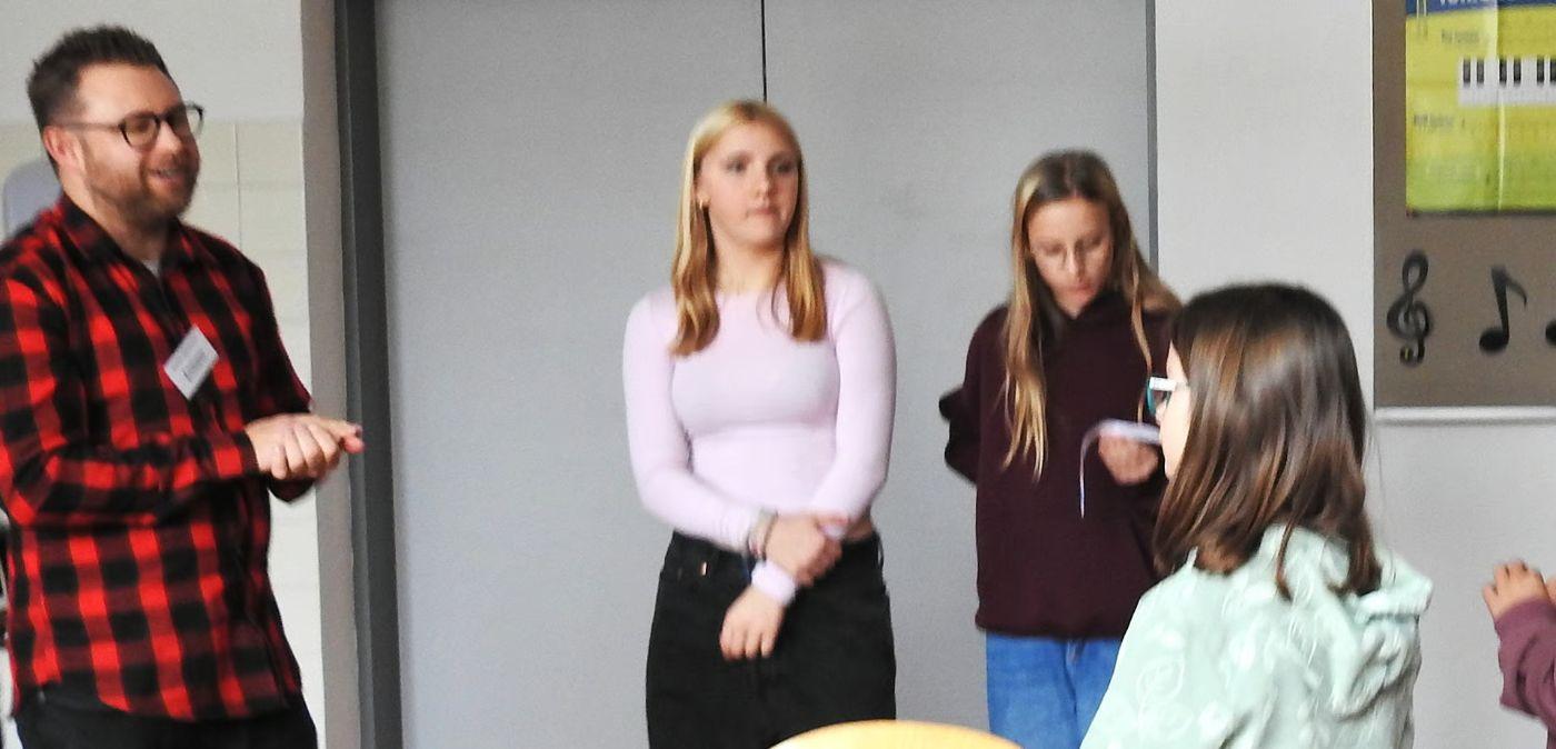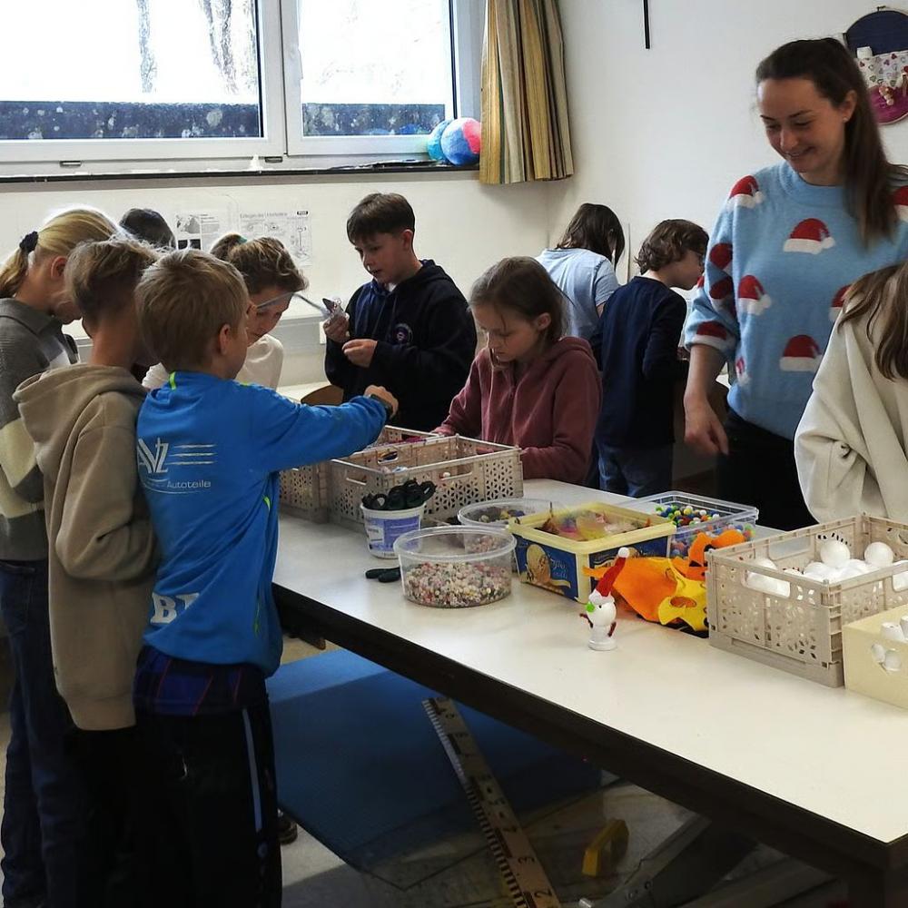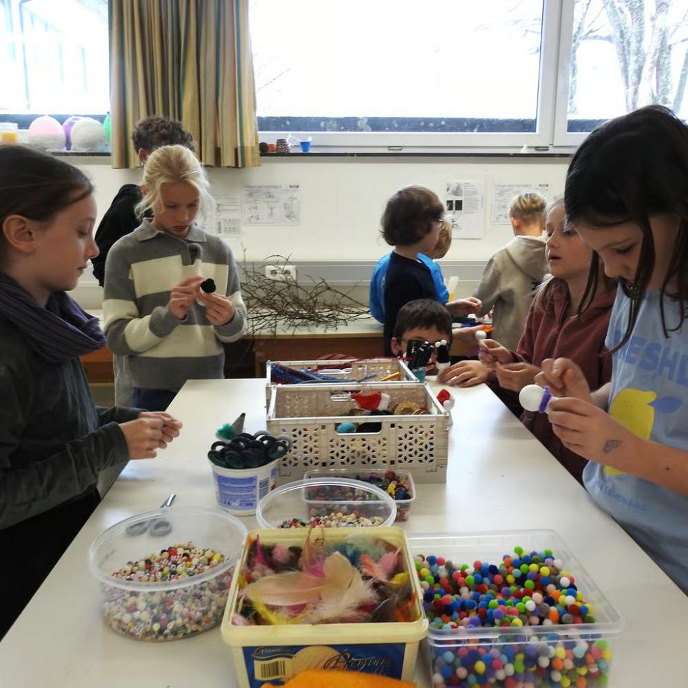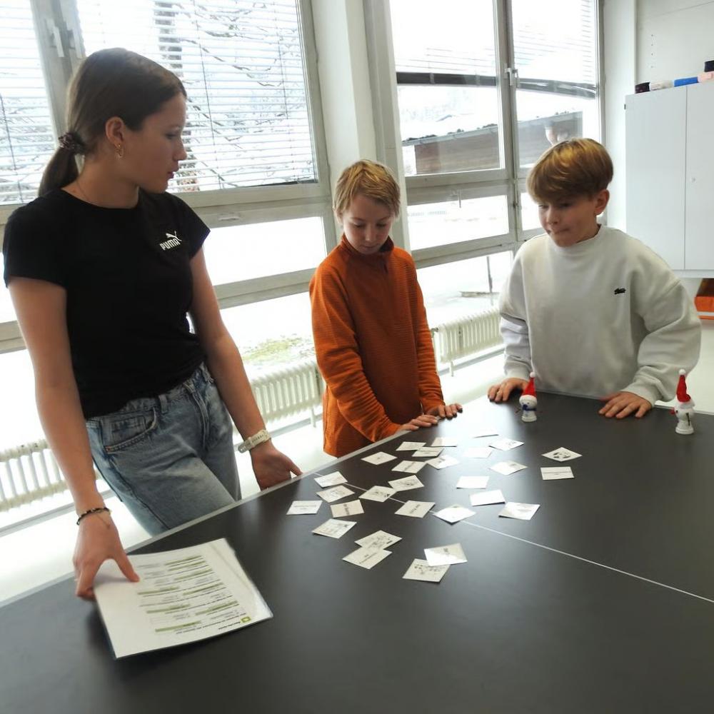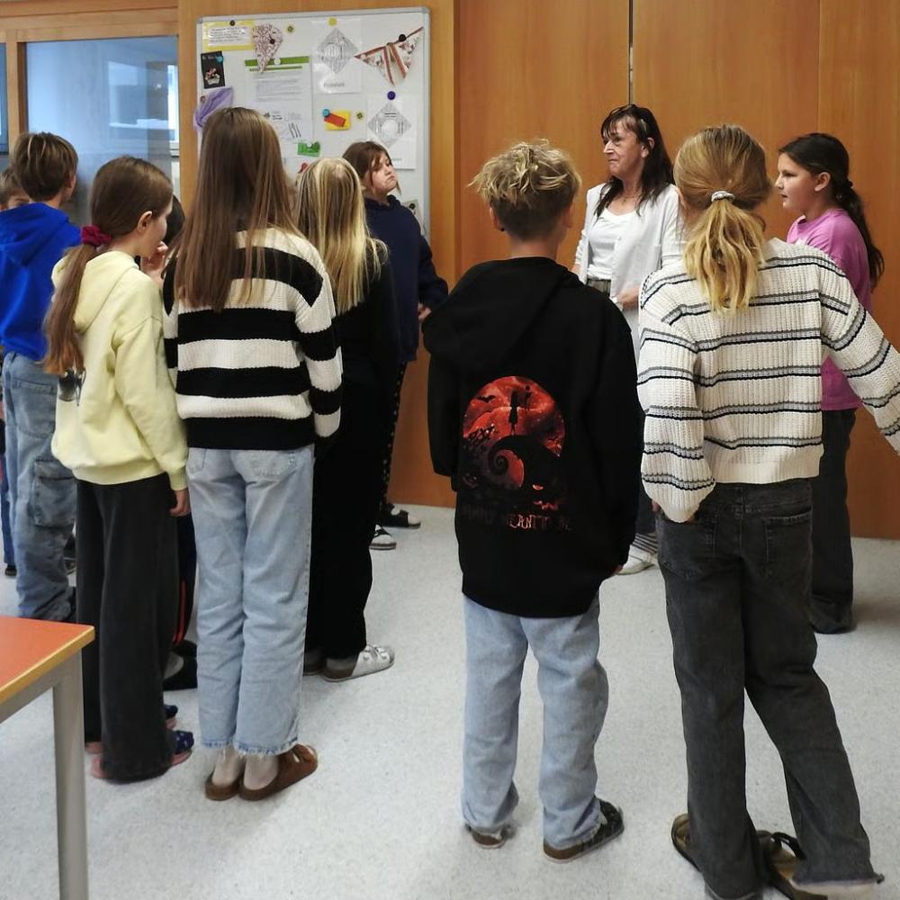 So erfuhren die Volksschulkinder einiges über die Fächer Physik, Technik und Design, MINT, Chemie, Musik, Ernährung und Haushalt, Sport und Bewegung sowie Berufsorientierung und natürlich durfte auch ein Blick in die Schulbibliothek nicht fehlen. Dabei ging es vor allem ums SELBST TUN und so wurden unter anderem Schnitzel paniert, getrommelt, programmiert und kleine Wichtel gebastelt, im Chemie- und Physiksaal wurde experimentiert, im Turnsaal gespielt und in der Aula Berufe erraten.