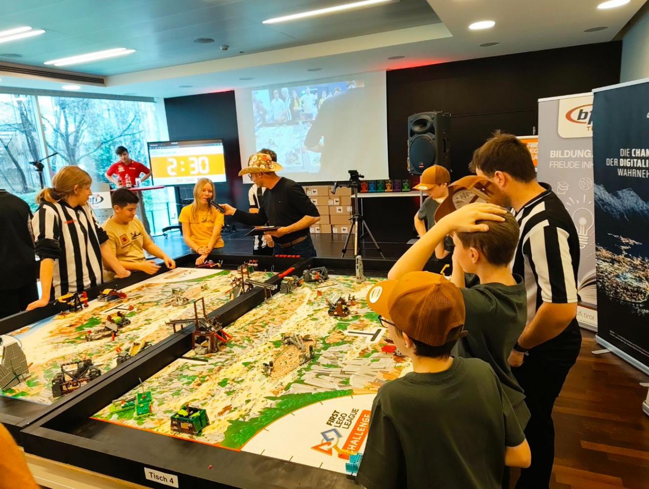 Vergangene Woche machten sich einige unserer SchülerInnen auf den Weg nach Innsbruck um am BFI an einem Wettbewerb für junge Technikbegeisterte teilzunehmen: Beim FIRST LEGO League (FLL) Regionalwettbewerb Tirol traten 17 SchülerInnen-Teams in einem Roboterprogrammierwettbewerb gegeneinander an.